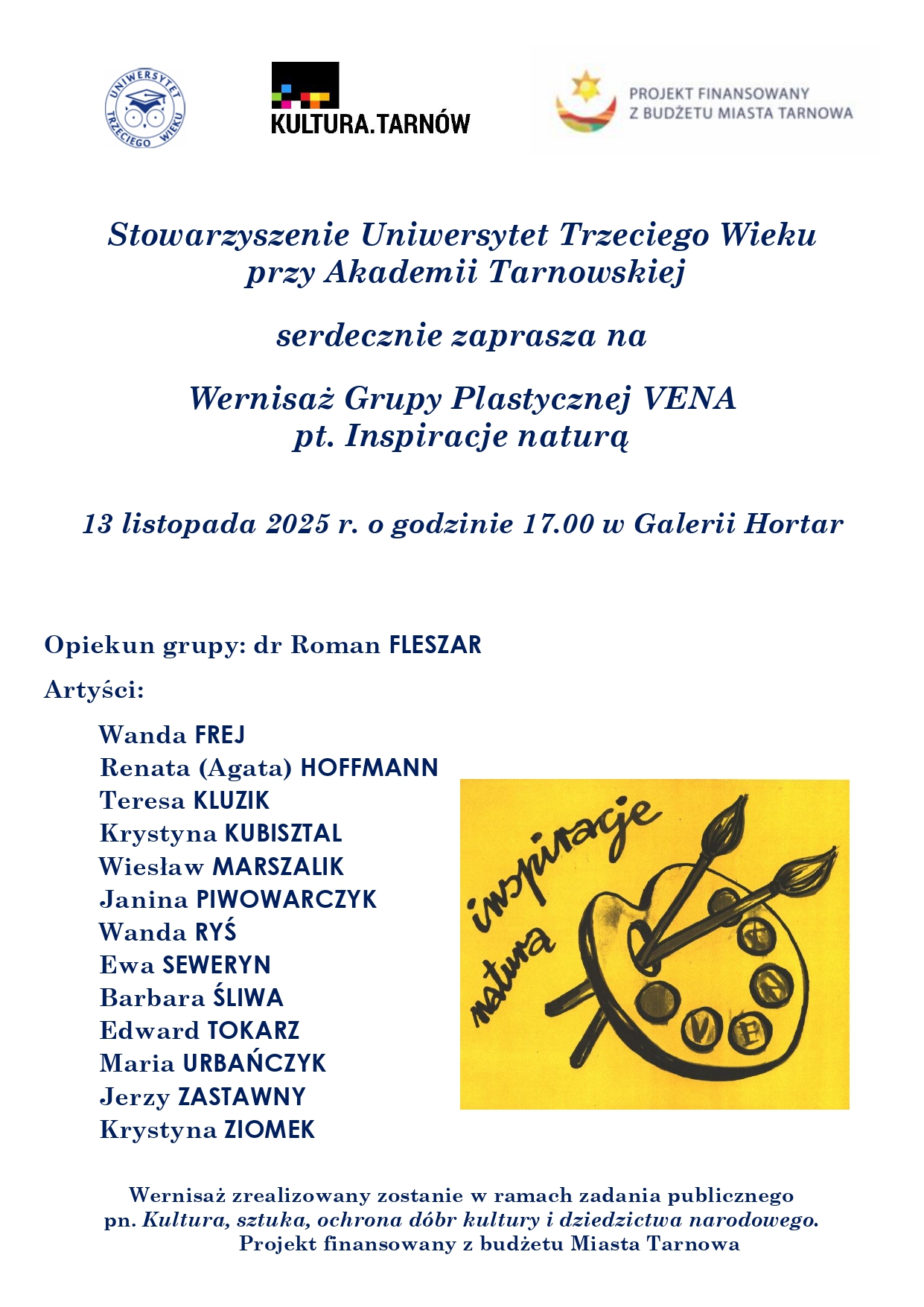 Grupa, której opiekunem jest Roman Fleszar, działa przy Uniwersytecie Trzeciego Wieku Akademii Tarnowskiej. Wystawa czynna będzie do końca listopada, a swoje prace zaprezentują na niej: Wanda Frej, Renata (Agata) Hoffmann, Teresa Kluzik, Krystyna Kubisztal, Wiesław Marszalik, Janina Piwowarczyk, Wanda Ryś, Ewa Seweryn, Barbara Śliwa, Edward Tokarz, Maria Urbańczyk, Jerzy Zastawny oraz Krystyna Ziomek.