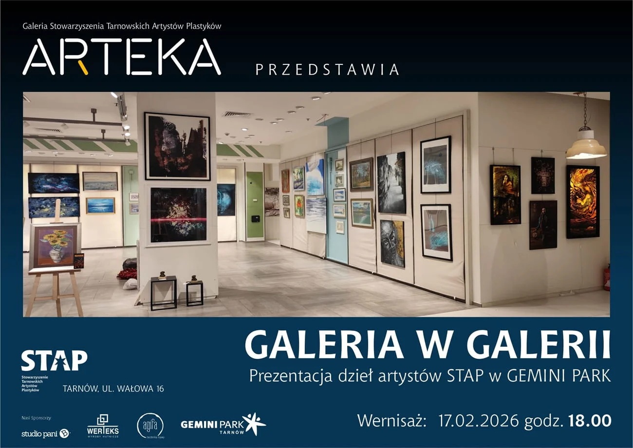 Na zaproszenie dyrekcji Gemini Park Tarnów, galeria sztuki Stowarzyszenia Tarnowskich Artystów Plastyków Arteka przeniosła się na trzy tygodnie z Wałowej 16 do lokalu w galerii Gemini.