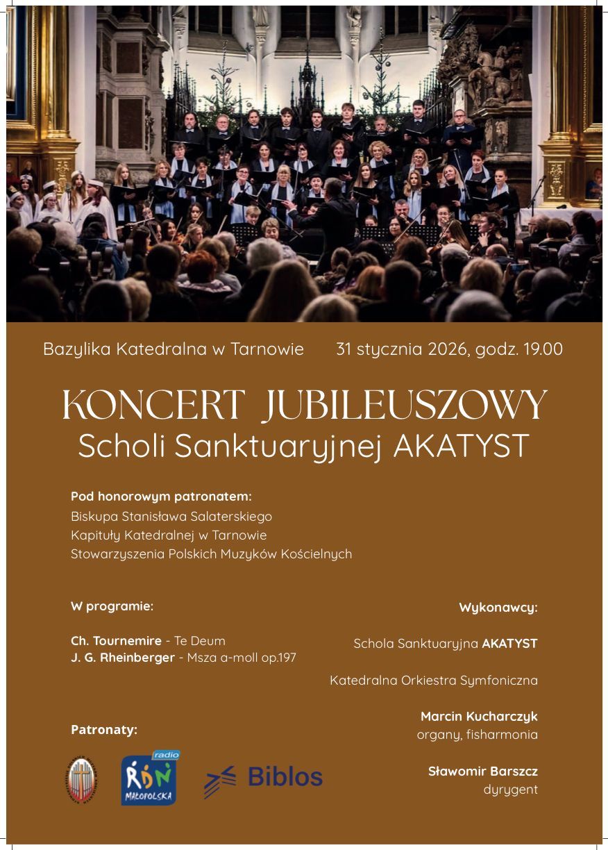 Jutro (sobota, 31 stycznia) w Bazylice Katedralnej w Tarnowie odbędzie się koncert jubileuszowy Scholi Sanktuaryjnej „Akatyst”. Początek o godz. 19.