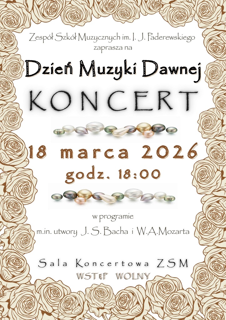 W programie koncertu znajdą się między innymi utwory Jana Sebastiana Bacha oraz Wolfganga Amadeusza Mozarta. Posłuchać ich będzie można w wykonaniu nauczycieli i uczniów tarnowskiego Zespołu Szkół Muzycznych.