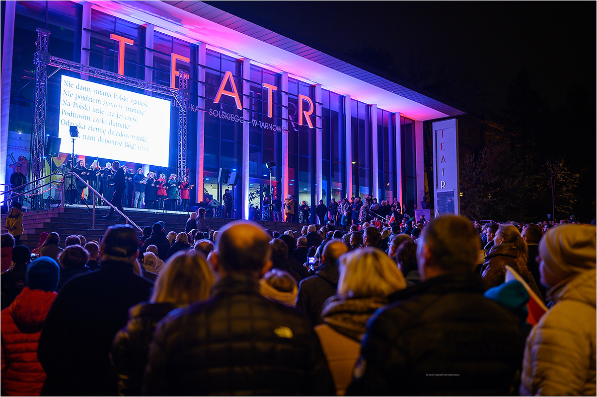 O godz. 16.30 w foyer teatru rozpoczną się, przeznaczone dla wszystkich chętnych niezależnie od wieku, warsztaty robienia flag i kotylionów. Godzinę później na telebimie przed teatrem oraz na dużej scenie zobaczyć będzie można film „Tadeusz Tertil. Burmistrz niepodległości” w reżyserii Pawła Sroki. O godz. 18.15 na schodach przed teatrem rozpocznie się natomiast koncert pieśni patriotycznych. Na schodach przed teatrem, mieszkańcy Tarnowa i okolic – zaopatrzeni w wykonane podczas wcześniejszych warsztatów flagi i kotyliony – będą mogli wspólnie z aktorami tarnowskiej sceny oraz Chórem Solskiego zaśpiewać pieśni żołnierskie, niepodległościowe, patriotyczne oraz harcerskie.