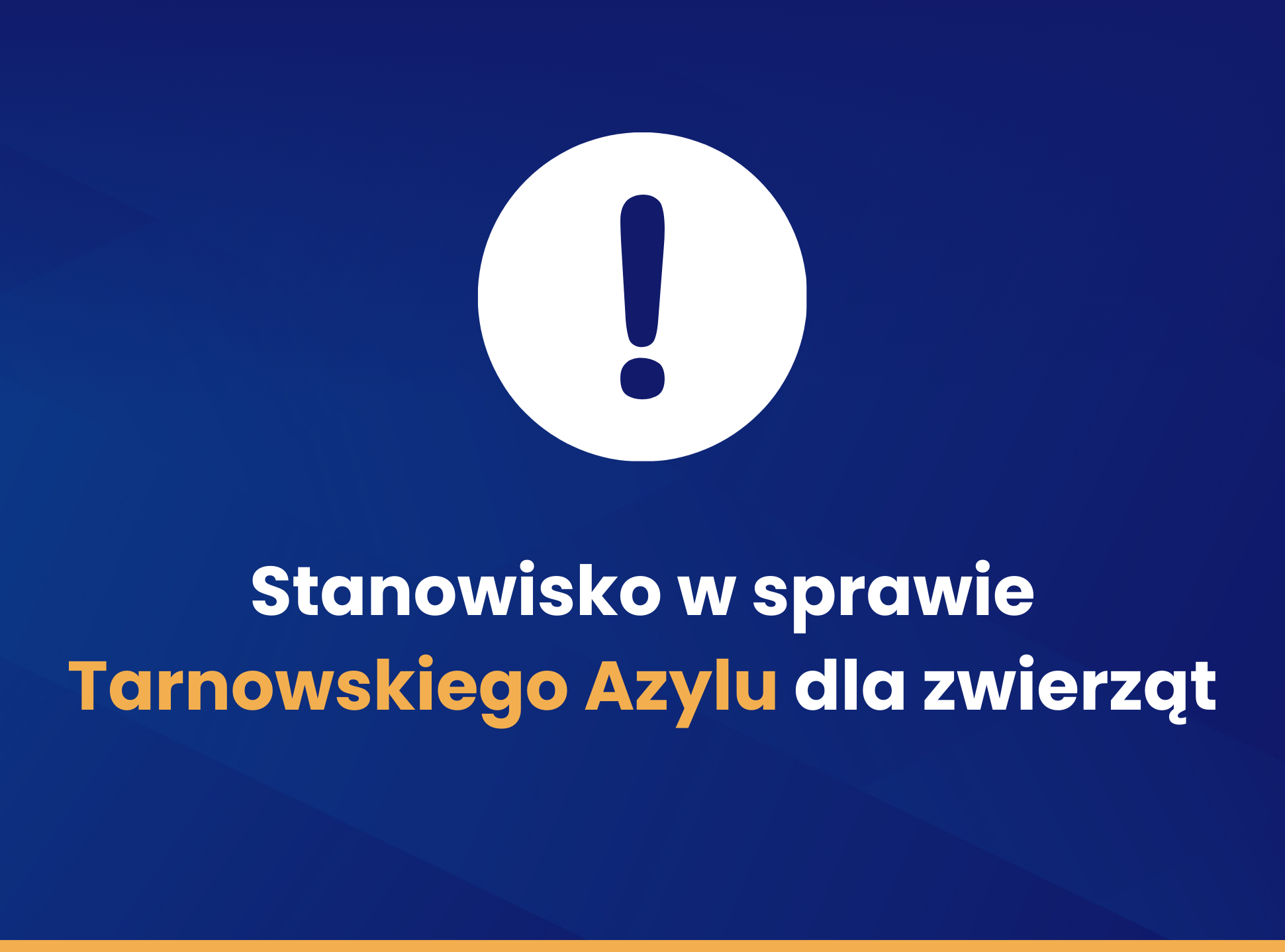 Na zdjęciu niebieskie tło,wykrzynik oraz napis "Sprawa kontroli w Tarnowskim Azylu dla zwierząt"