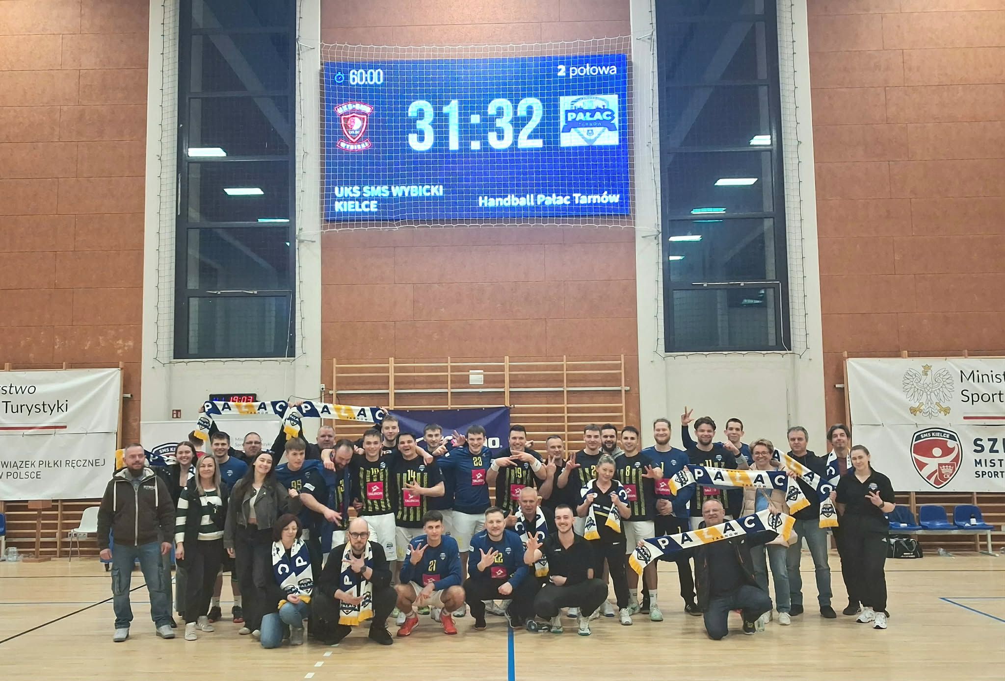 W dwudziestej pierwszej kolejce grupy „D” pierwszej ligi piłki ręcznej mężczyzn, Handball Pałac Tarnów zmierzył się na wyjeździe z UKS SMS Wybicki Kielce. Po zaciętym spotkaniu Tarnowianie wygrali 32-31 (16-18) odnosząc siedemnaste zwycięstwo w sezonie.