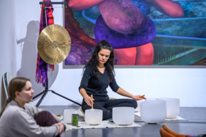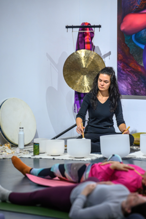 Joga przy dźwiękach mis i gongów tybetańskich. Prowadzenie: Aleksandra Natkaniec – Joga In Balance, Anna Król – Misja Misy Wydarzenie w ramach 22. Festiwalu Sztuki ArtFest Fot. Przemysław Sroka