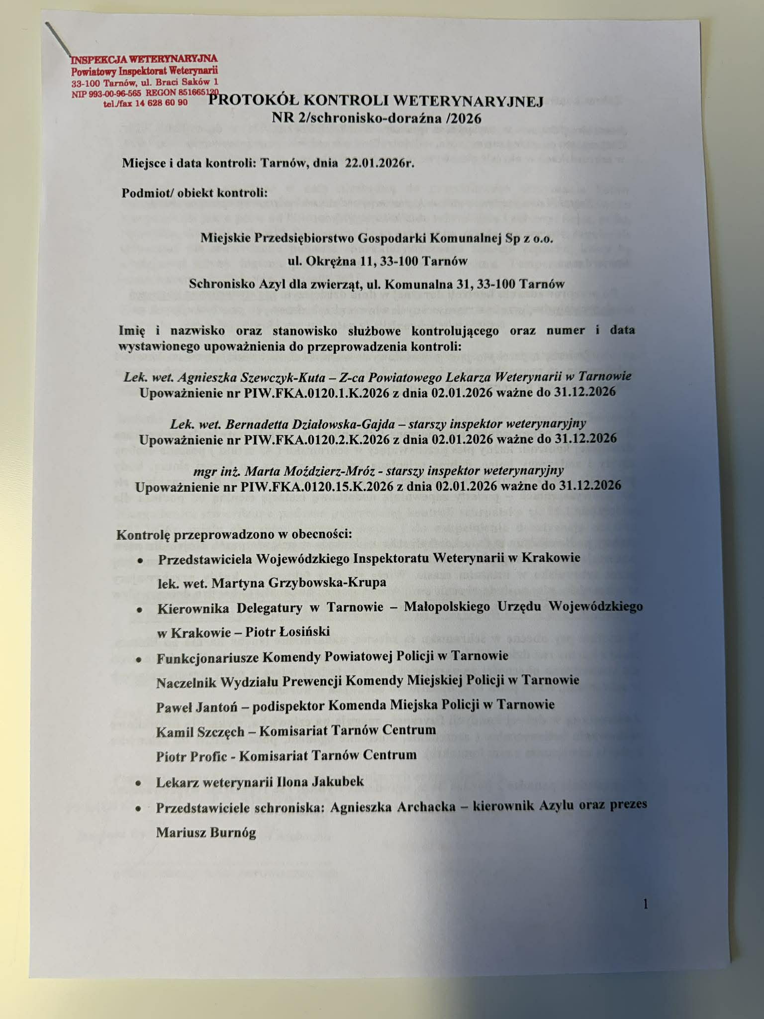 W odpowiedzi na komentarze i publikacje, które pojawiły się w przestrzeni medialnej, informujemy, że zwierzęta przebywające w Tarnowskim Azylu dla zwierząt są bezpieczne, zadbane i mają zapewnione właściwe warunki bytowe. Potwierdza to protokół doraźnej kontroli weterynaryjnej (dokumenty do pobrania pod tekstem).