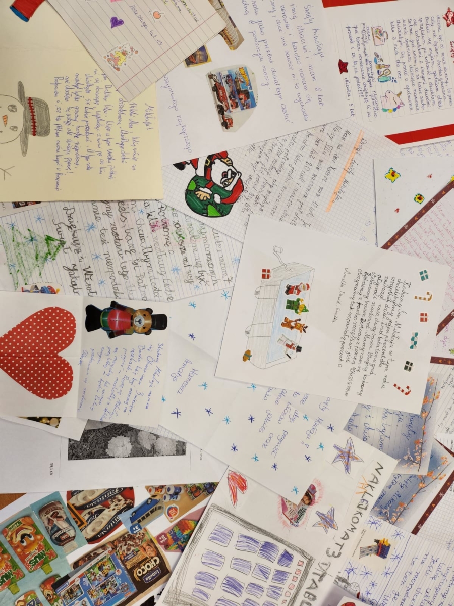 O czym marzą dzieci? Potrzeby są różne – kredki, puzzle, książeczki, klocki, czapka, szalik, modelina, koszulka ulubionego zespołu piłkarskiego, słuchawki bezprzewodowe, rękawiczki, zestaw do robienia świec. Listy pochodzą od dzieci w różnym wieku, niektóre napisane są przez nie osobiście, maluchy wyręczyli opiekunowie.