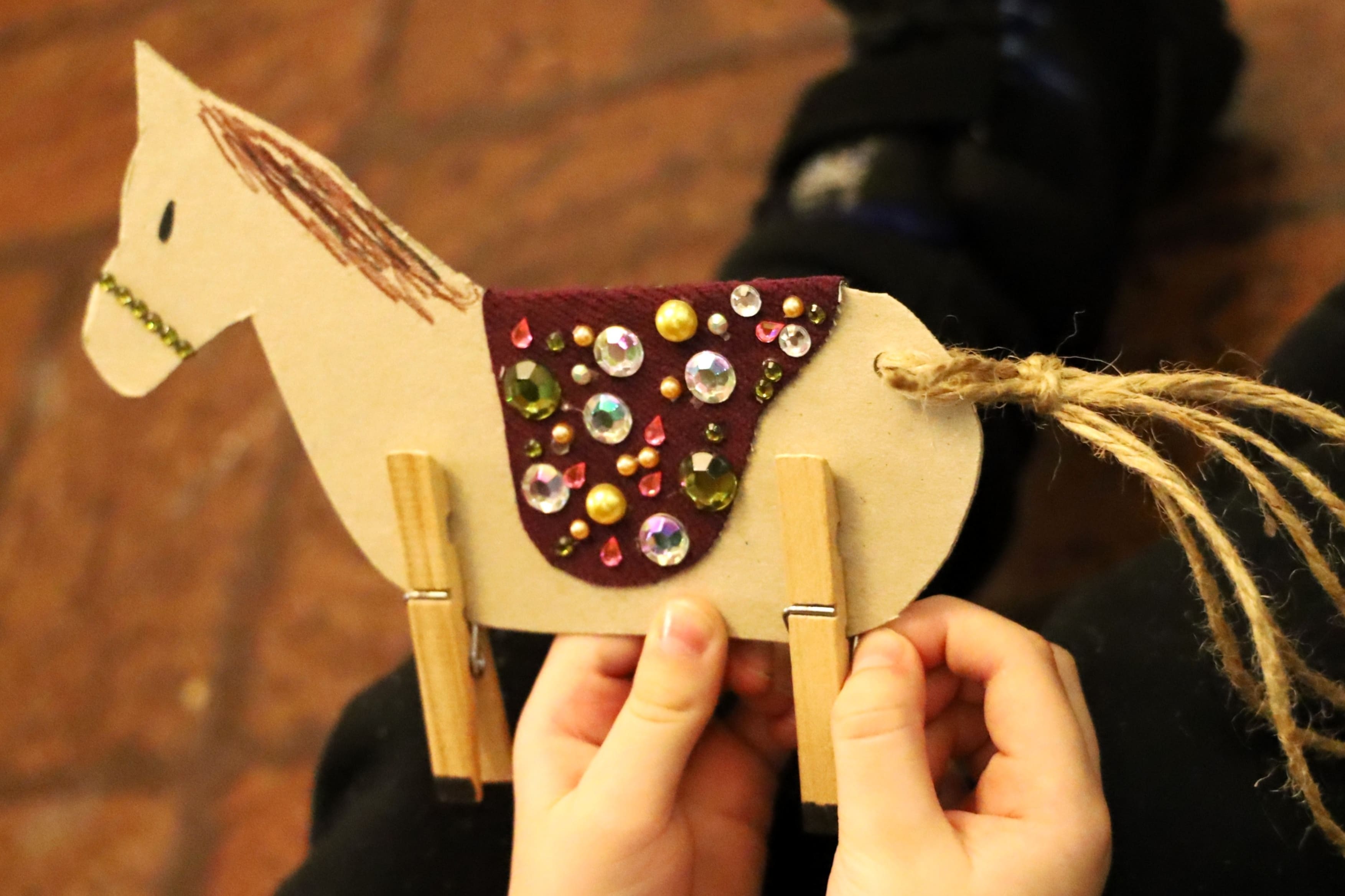Uczestników zajęć „Wio koniku, wio” czeka wyprawa do zbrojowni, gdzie zobaczą na własne oczy, jak wyglądały dawne, bogato zdobione siodła i rzędy końskie, lśniące w słońcu niczym biżuteria. Wezmą także udział w części plastycznej, zamieniając się w artystę-rzemieślnika. Każdy z nich stworzy własnego konika, a wyzwaniem będzie zaprojektowanie i ozdobienie jego siodła „drogimi kamieniami” – tak, by wyglądało jak godne samego króla.