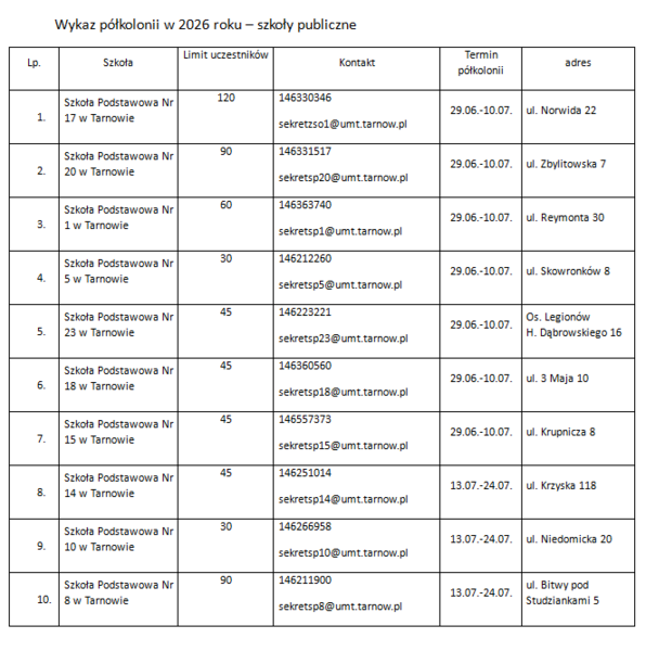 3. Uczestnikiem półkolonii może być wyłącznie uczeń publicznej lub niepublicznej szkoły podstawowej, mający adres zamieszkania na terenie miasta Tarnowa lub uczęszczający do szkoły mającej siedzibę na terenie miasta Tarnowa.
