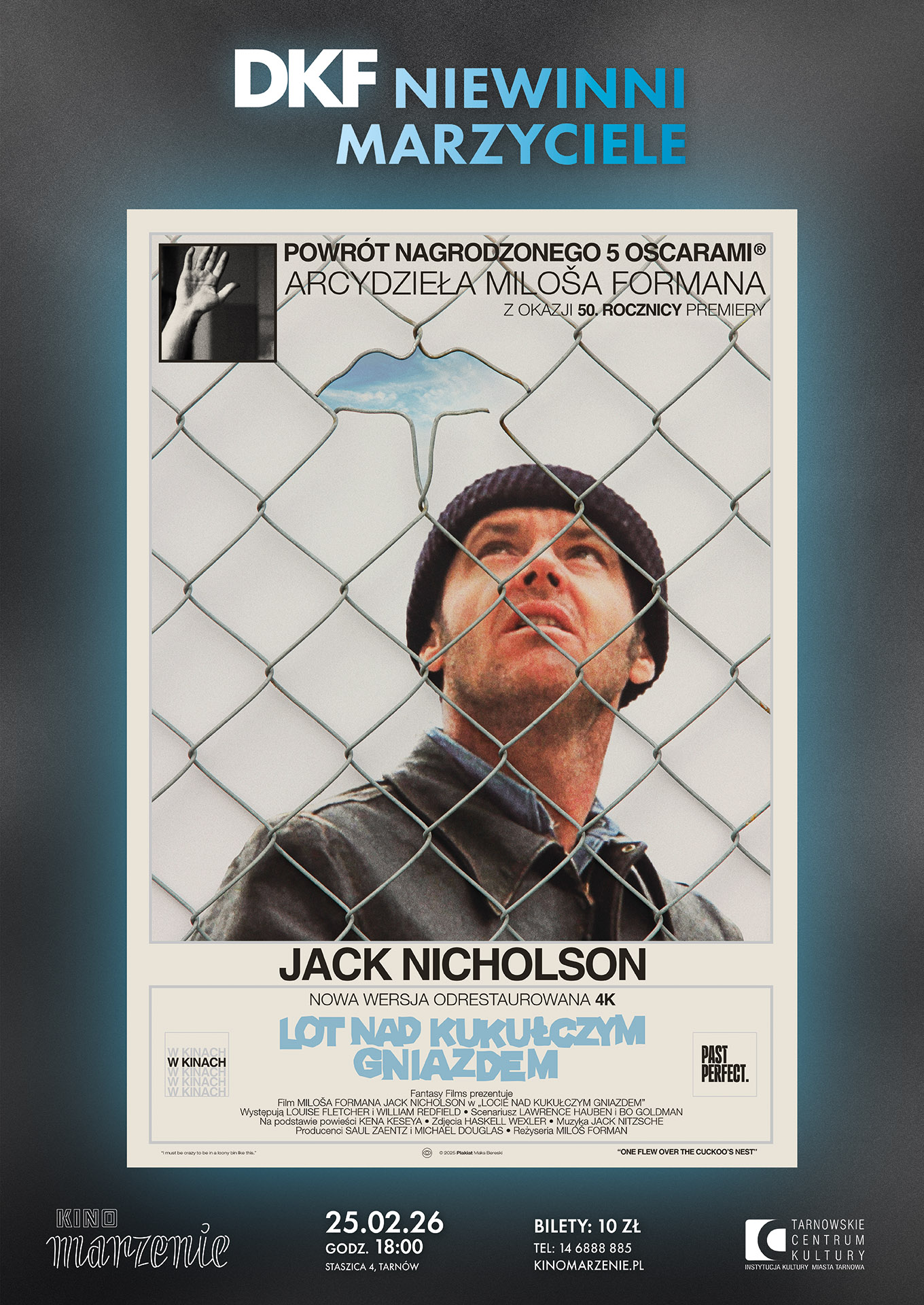 Jeszcze w tym miesiącu – w środę, 25 lutego – w Kinie Marzenie odbędzie się pierwsze spotkanie nowopowstałego Dyskusyjnego Klubu Filmowego „Niewinni Marzyciele”. Pierwszym prezentowanym tytułem będzie kultowy „Lot nad kukułczym gniazdem” Miloša Formana. Początek o godz. 18.