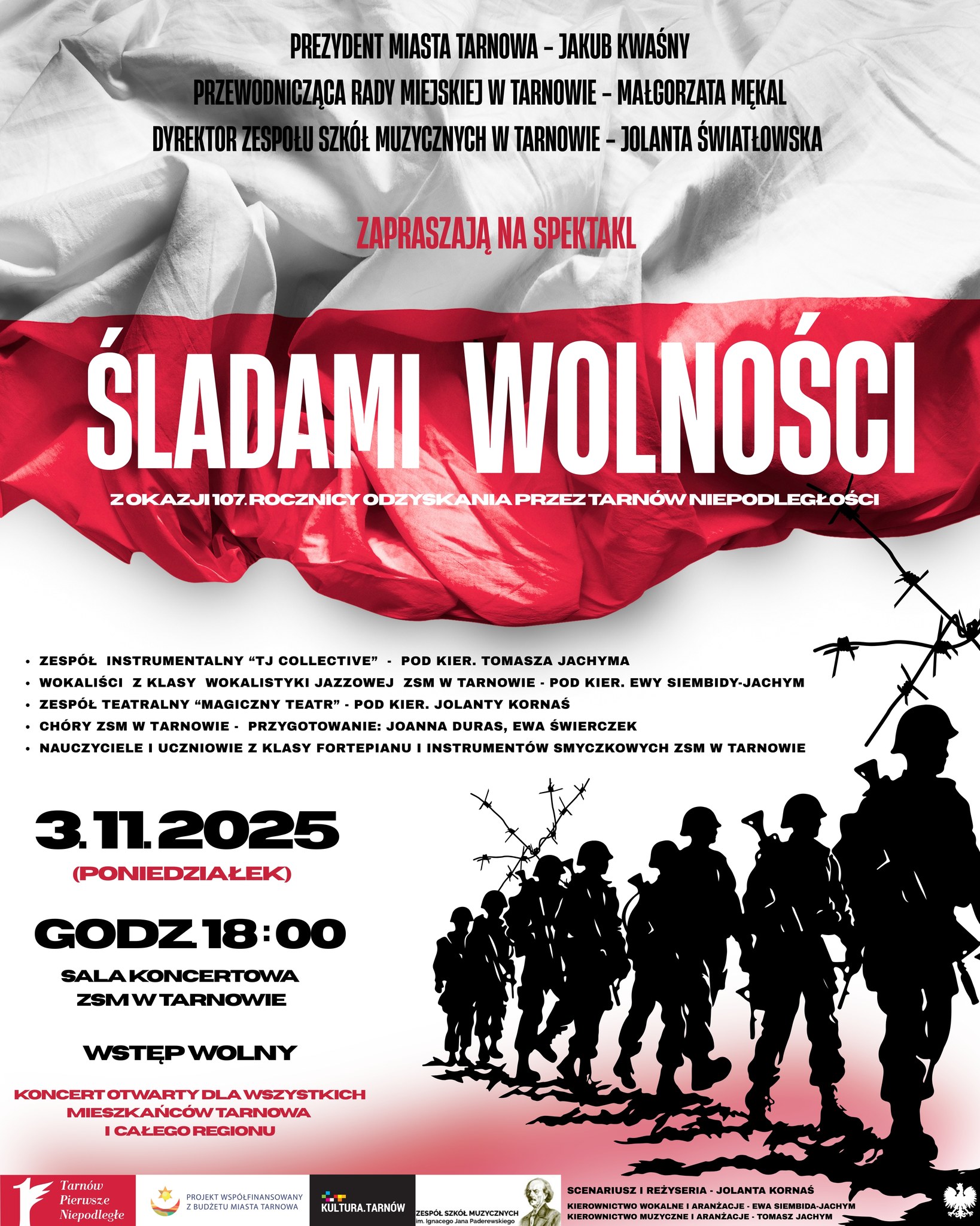 Projekt współfinansowany jest z budżetu miasta Tarnowa. Na spektakl, odbywający się w ramach Święta Miasta Tarnowa – Tarnów Pierwsze Niepodległe, zapraszają: prezydent Tarnowa Jakub Kwaśny, przewodnicząca Rady Miejskiej w Tarnowie Małgorzata Mękal oraz dyrektorka Zespołu Szkół Muzycznych w Tarnowie Jolanta Światłowska.