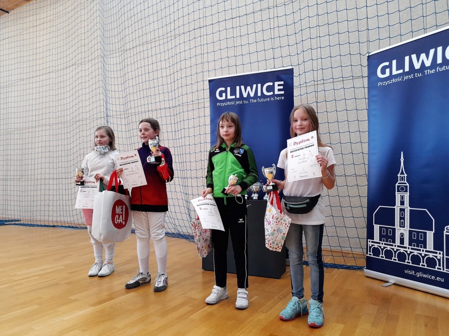 Z bardzo dobrej strony zaprezentowała się w Gliwicach również szpadzistka MKS Pałac Młodzieży Tarnów, Daria Marcinkiewicz, występująca w kategorii dzieci (roczniki 2009-2010). Po komplecie czterech zwycięstw w pojedynkach grupowych, w pierwszej rundzie zmagań pucharowych tarnowianka miała wolny los. W drugiej pokonała 7-5 Magdalenę Budnik z UKS Wołodyjowski Siemianowice Śląskie, w trzeciej nie dała natomiast szans Zofii Gramcow, wygrywając z zawodniczką RMKS Rybnik 10-2. W kolejnej walce, szpadzistka Pałacu nie sprostała Janinie Kanabaj z Toruńskiej Szkoły Szermierki, kończąc rywalizację na siódmej pozycji.
