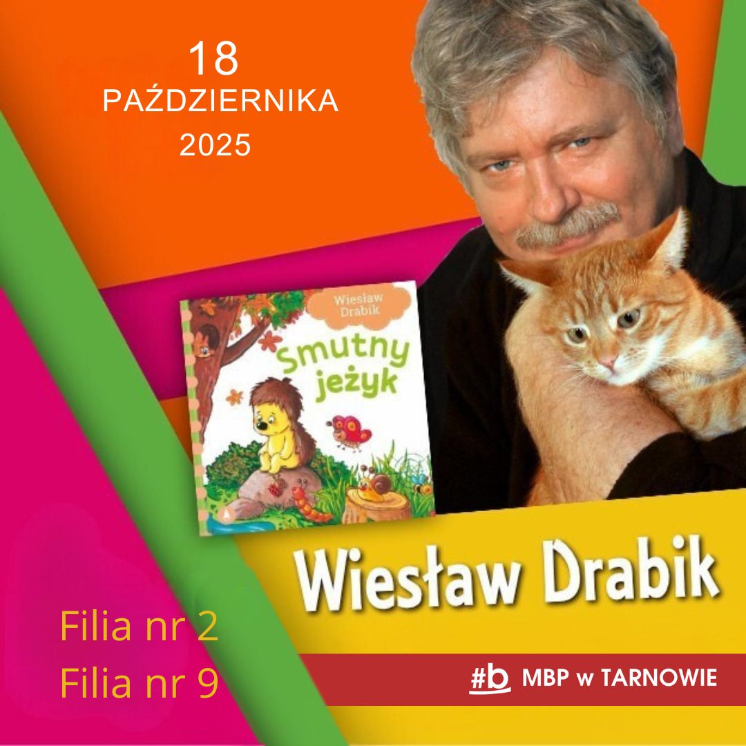 To już kolejna wizyta Wiesława Drabika w naszym mieście. Tym razem spotkania zaplanowano w dwóch filiach miejskiej biblioteki. Pierwsze odbędzie się w bibliotece na osiedlu Zielonym (Filia nr 2) o godz. 10. Kolejne przewidziano tego samego dnia o godz. 12 na osiedlu Krzyż, przy ul. Krzyskiej (Filia nr 9). Nie obowiązują wcześniejsze zapisy.