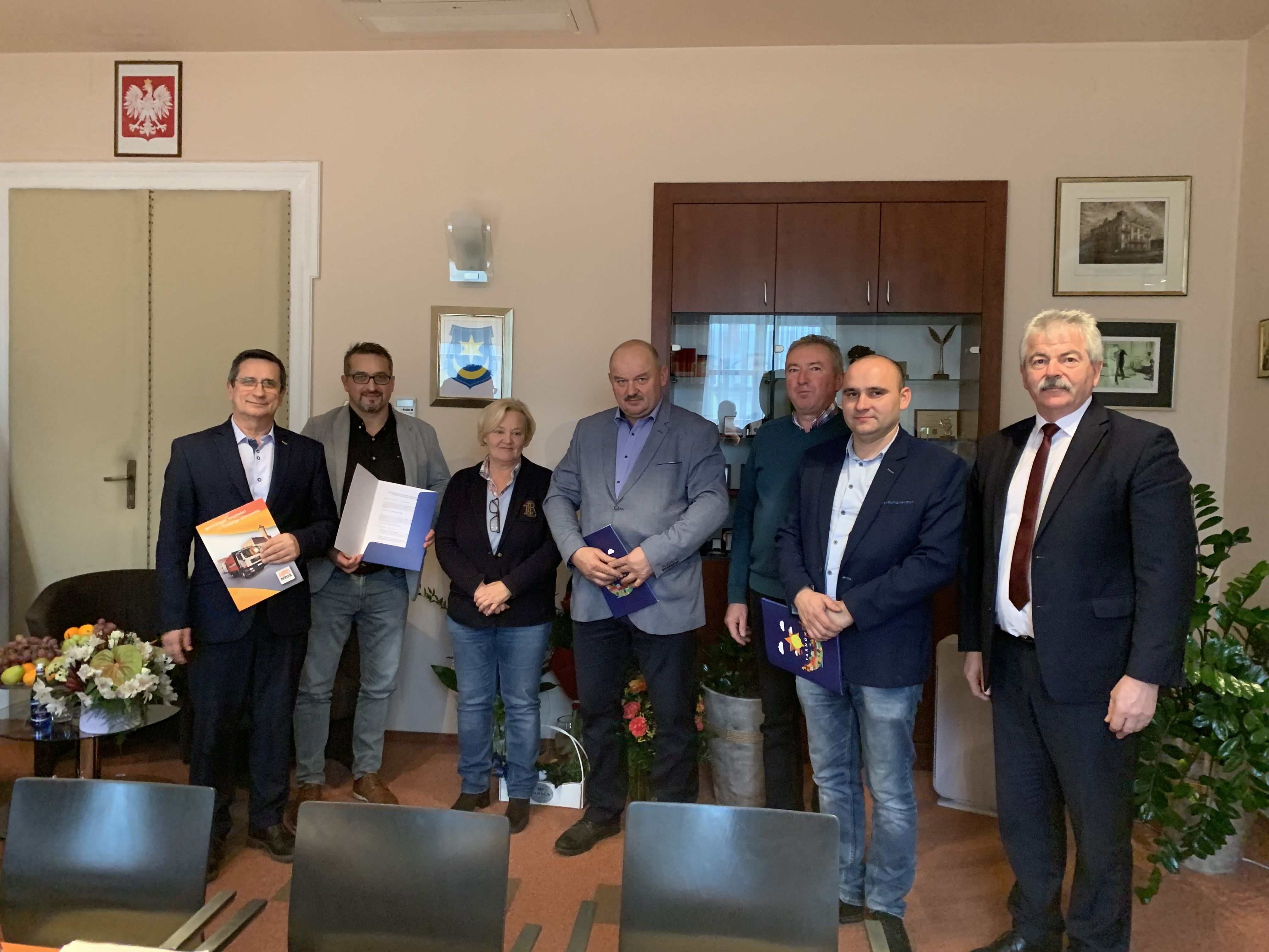 Na zdjęciu po podpisaniu porozumienia od lewej: prezydent Roman Ciepiela, prezes obydwu spółek, Mariusz Burnóg, związkowcy z PUK i MPG oraz zastępca prezydenta, Tadeusz Kwiatkowski.