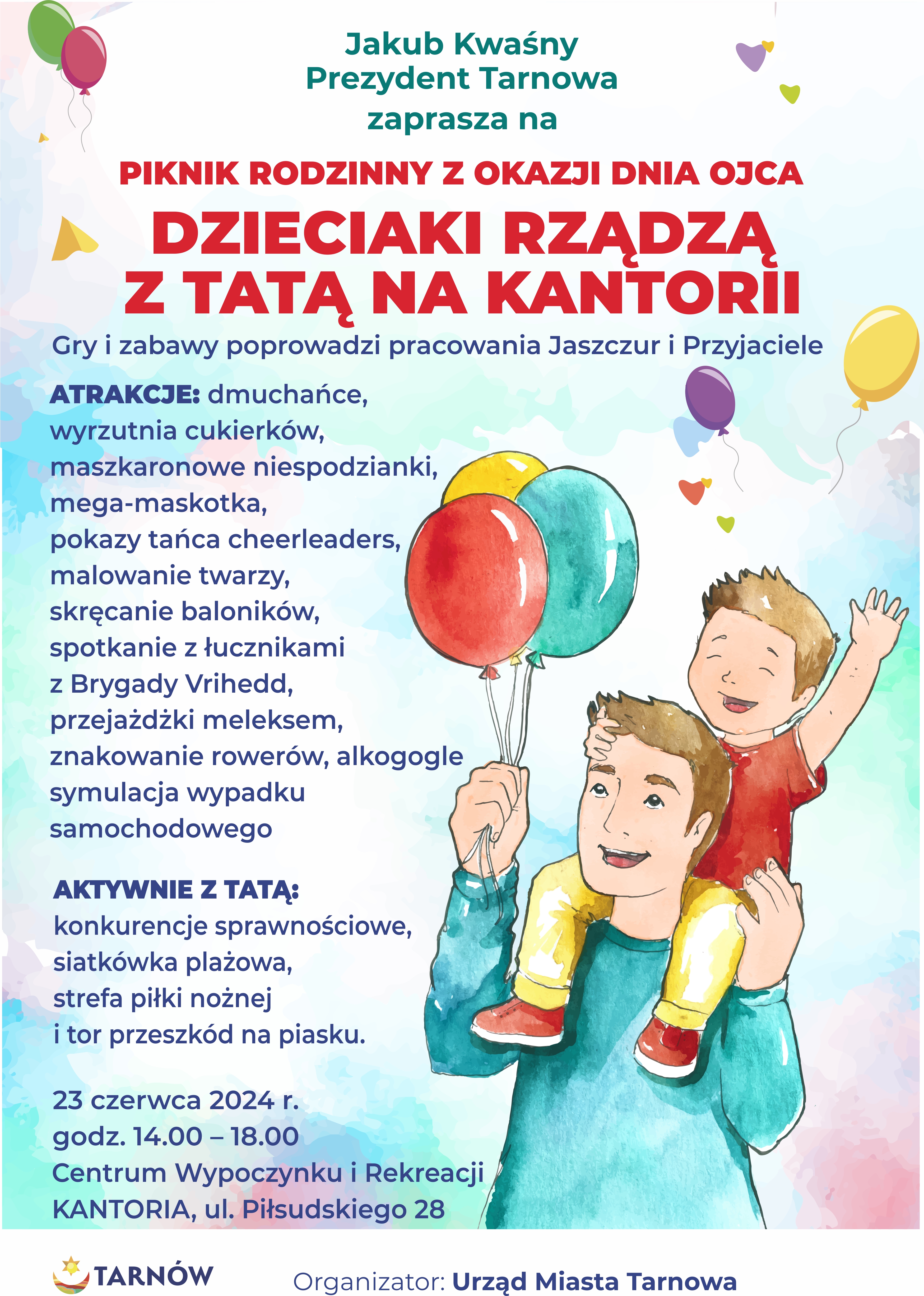 Za kilka dni tarnowska Kantoria ponownie zostanie opanowana przez dzieciaki, tym razem jednak do akcji dołączą też tatusiowie! 23 czerwca, z okazji Dnia Ojca, czekać na nich będą tam konkursy, niespodzianki i animatorzy, którzy zadbają o dobrą zabawę. Akcja rozpocznie się o godzinie 14 i trwać będzie do godziny 18. Na wydarzenie zaprasza prezydent Tarnowa Jakub Kwaśny.