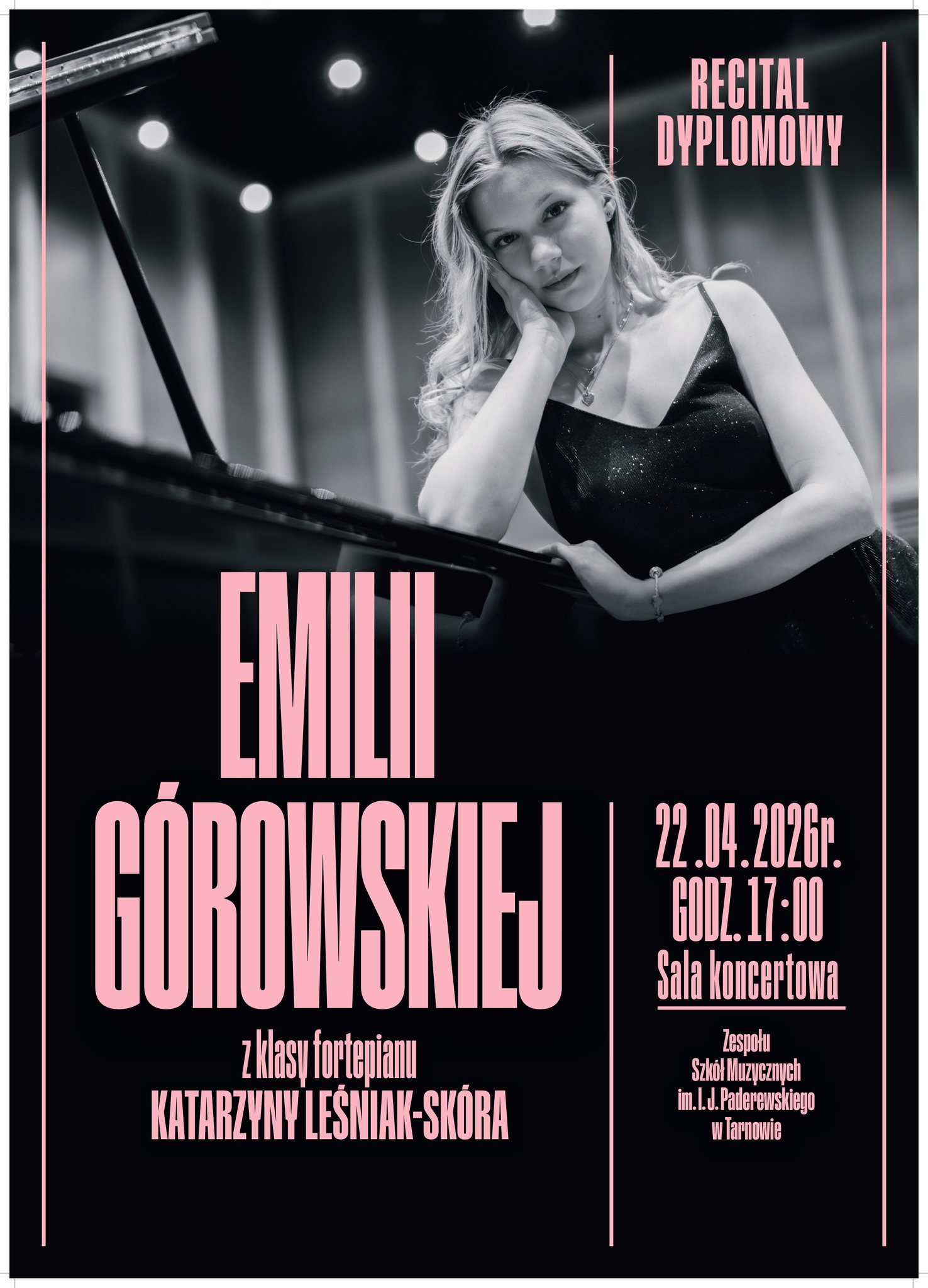 W sali koncertowej Zespołu Szkół Muzycznych w Tarnowie przy ul. Lippóczy’ego 4 wysłuchać będzie można dzisiaj (środa, 22 kwietnia) recitalu dyplomowego Emilii Górowskiej z klasy fortepianu Katarzyny Leśniak-Skóry. Początek o godz. 17.