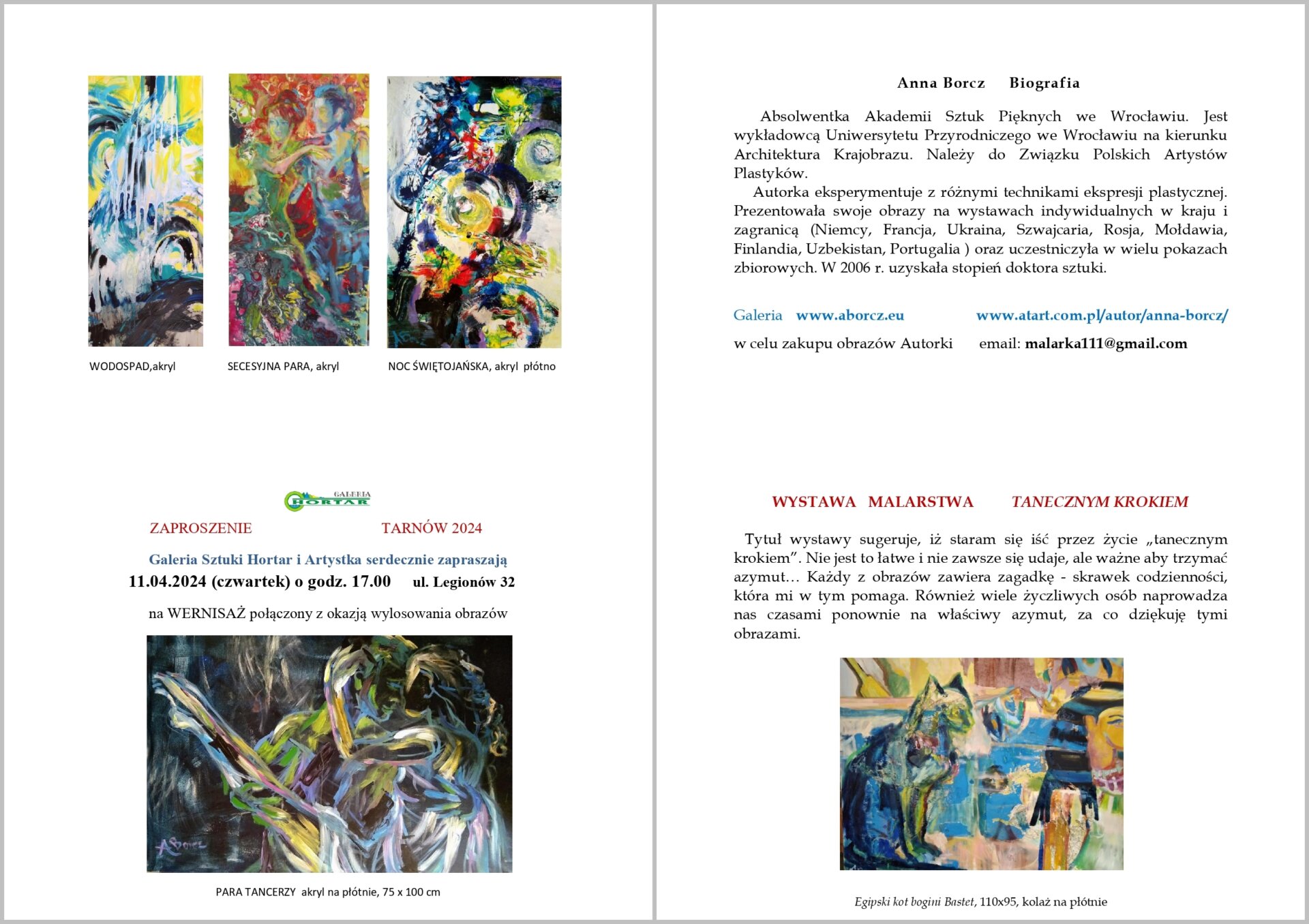 Dzisiaj (czwartek, 11 kwietnia), w Galerii Hortar przy ul. Legionów 32 będzie miał miejsce wernisaż wystawy malarstwa Anny Borcz „Tanecznym krokiem”. Połączony on będzie z możliwością wylosowania obrazów. Początek o godz. 17.