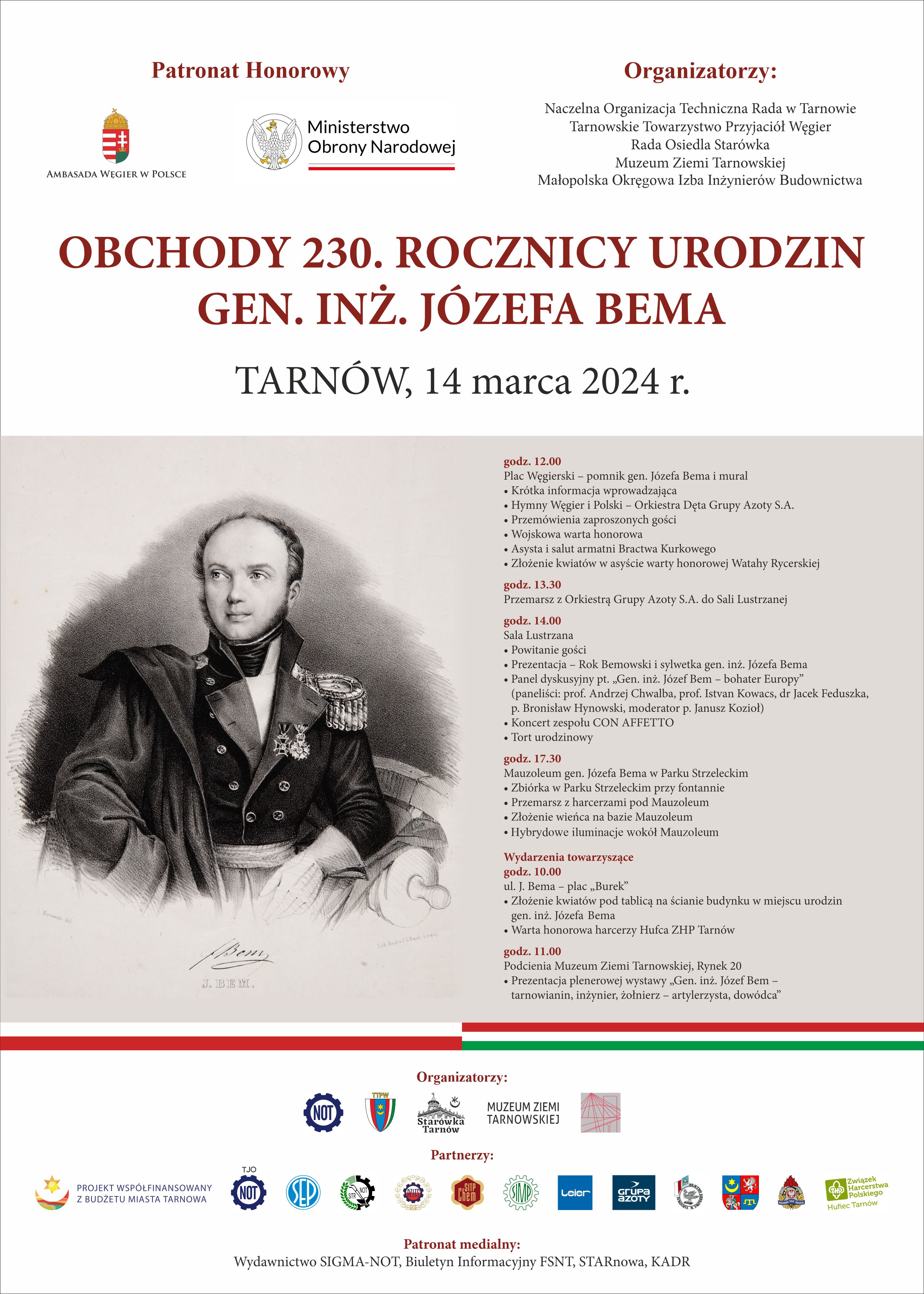 Szeroki program wydarzeń rozpocznie się złożeniem kwiatów w asyście harcerzy Hufca ZHP w miejscu urodzin gen. Bema, następnie będzie możliwość zwiedzenia plenerowej wystawy o generale w podcieniach Muzeum Ziemi Tarnowskiej na Rynku.