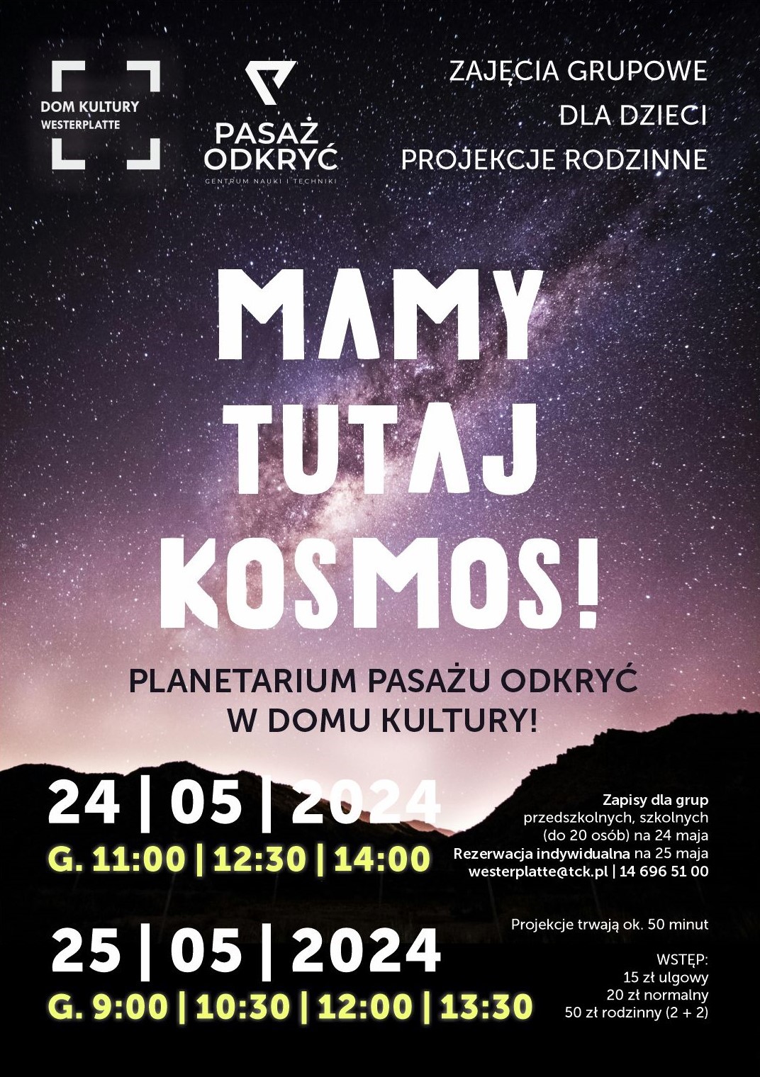 W piątek, 24 maja odbędą się prelekcje dla grup zorganizowanych – szkolnych i przedszkolnych. Zajęcia zaplanowano w godz.: 11, 12:30, 14. Z kolei dzień później, 25 maja przewidziano projekcje dla uczestników indywidualnych. W tym przypadku seanse wyznaczono o godz.: 9, 10:30, 12 i 13:30.