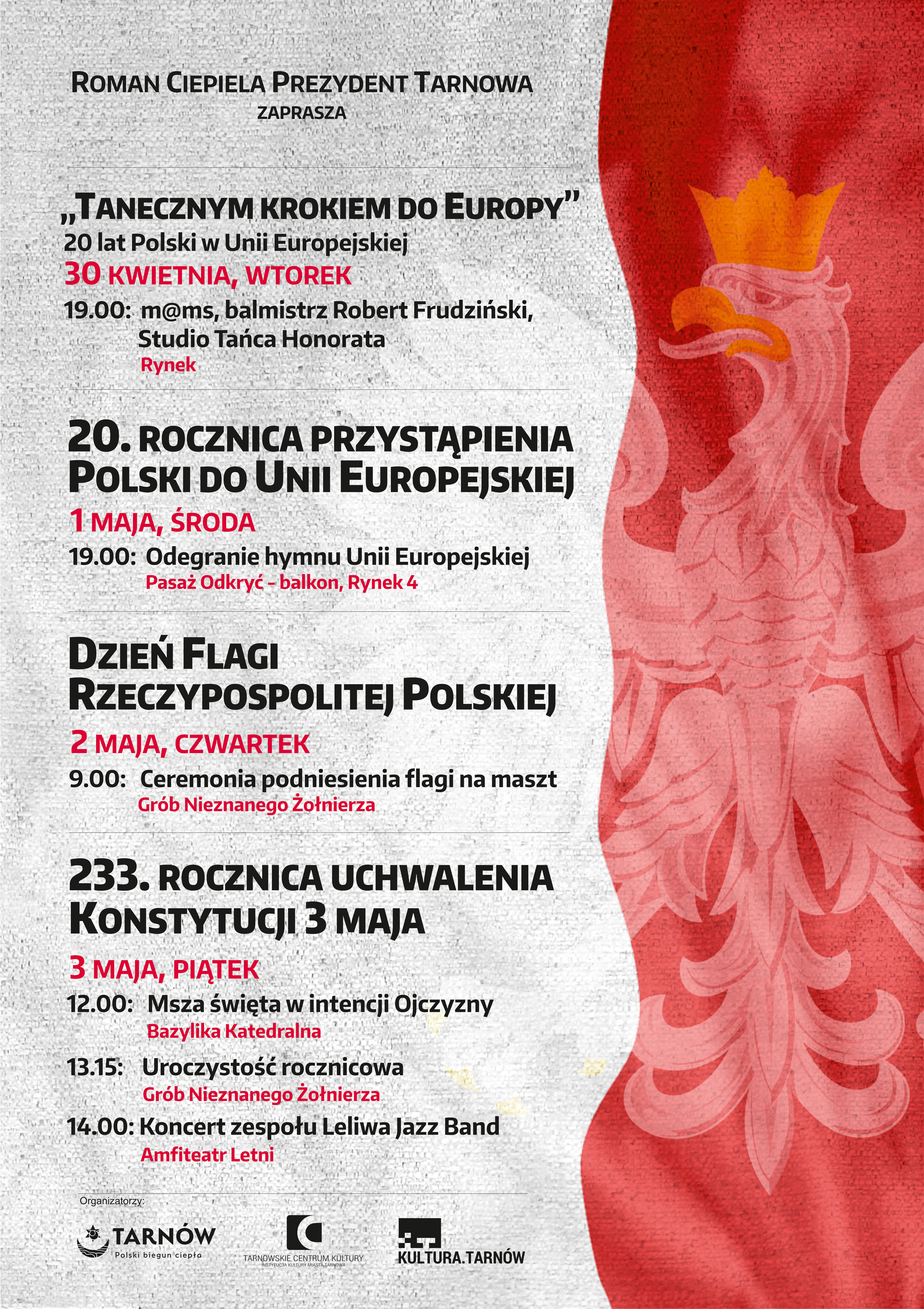 Potańcówki z wodzirejem, hymn UE na gitarach elektrycznych, Dzień Flagi i rocznica uchwalenia Konstytucji 3 Maja to cztery wydarzenia, na które zaprasza mieszkańców Urząd Miasta Tarnowa.