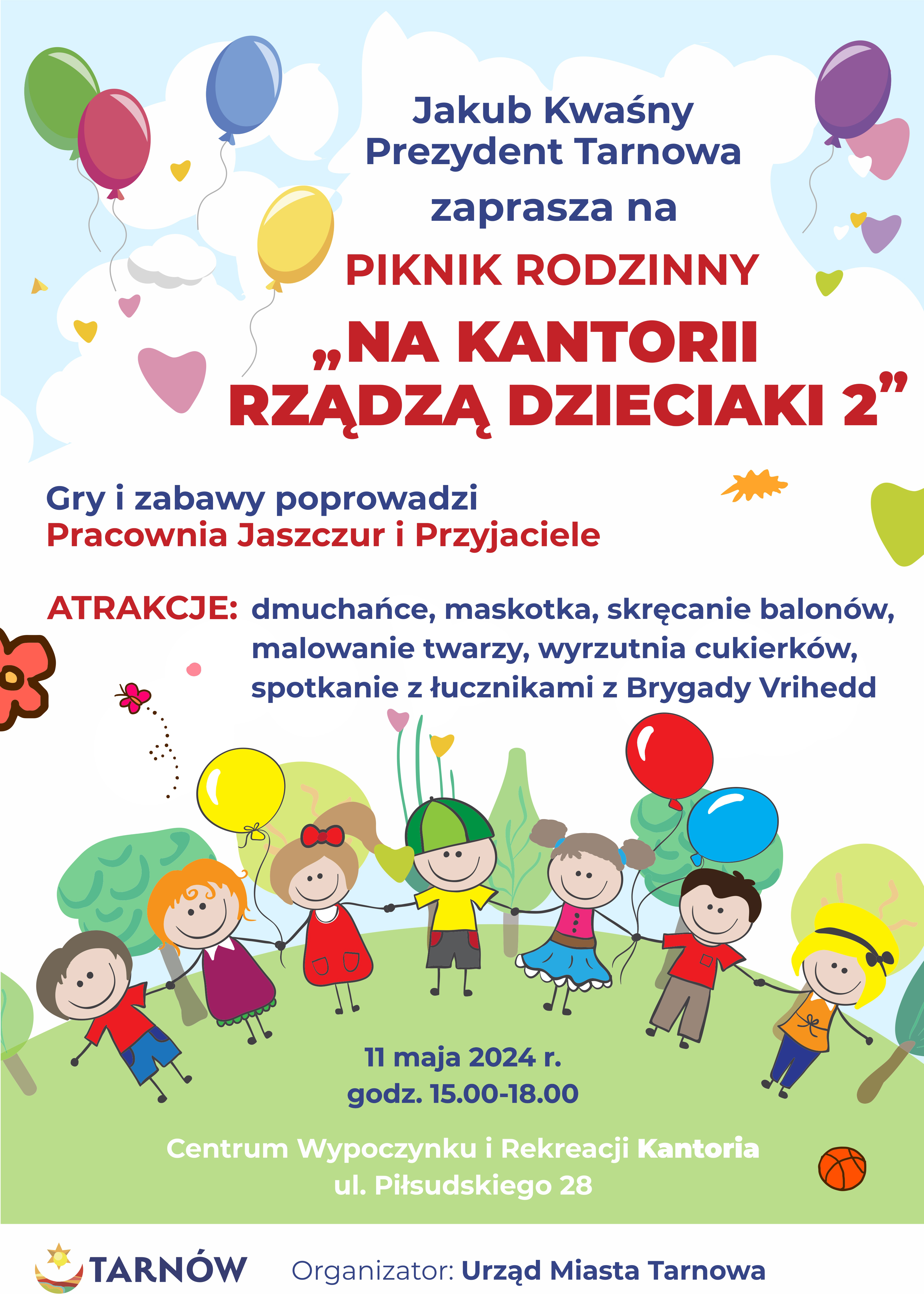 Tarnowska Kantoria ponownie zostanie opanowana przez dzieciaki! W najbliższą sobotę, 11 maja, czekać na nie będą tam konkursy, niespodzianki i animatorzy, którzy zadbają o dobrą zabawę. Akcja rozpocznie się o godzinie 15 i trwać będzie do godziny 18. Na wydarzenie zaprasza prezydent Tarnowa Jakub Kwaśny.