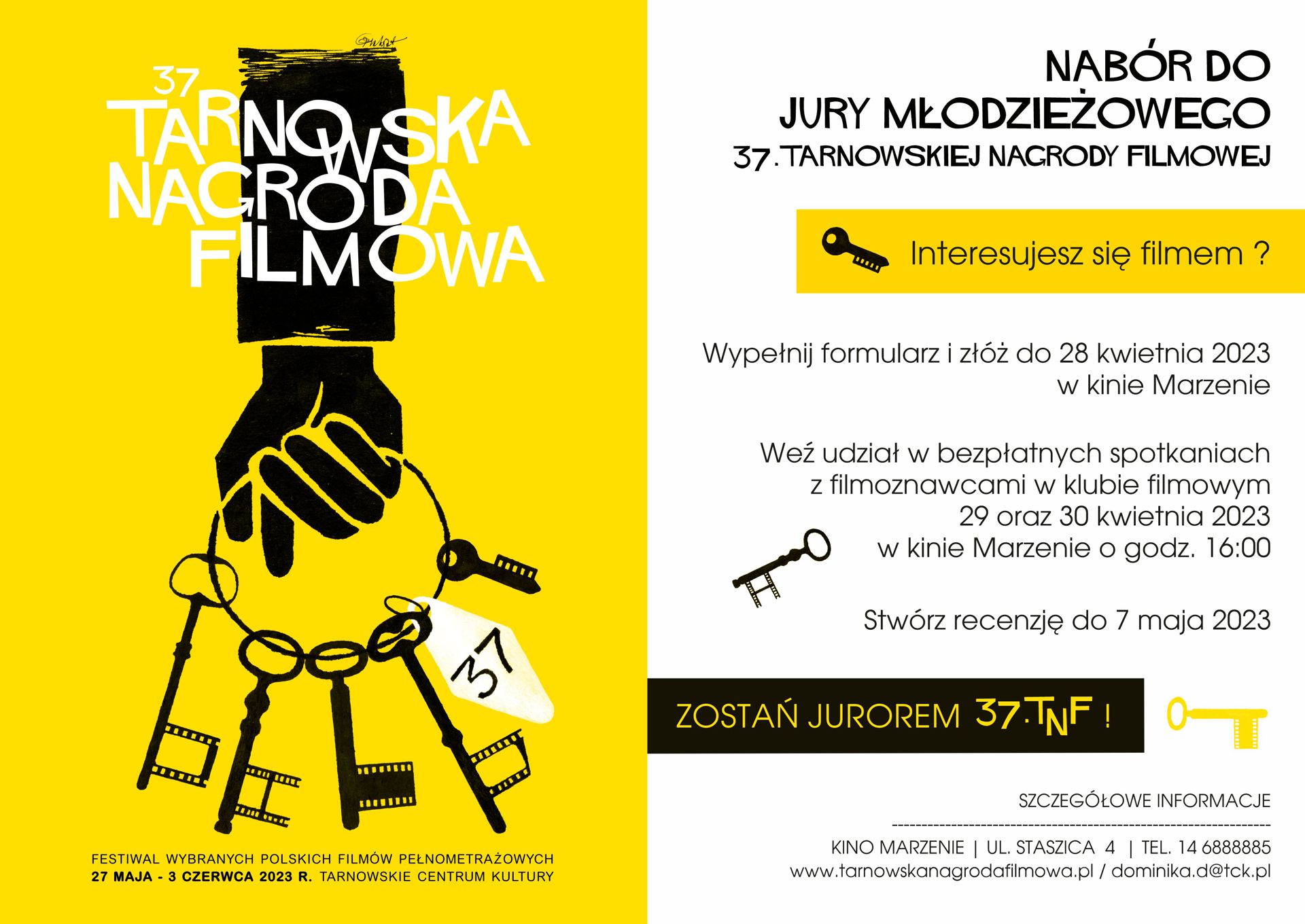 Ruszył nabór do Jury Młodzieżowego 37. Tarnowskiej Nagrody Filmowej. Składał będzie się on z trzech etapów, a propozycja skierowana jest do uczniów szkół średnich oraz do studentów.