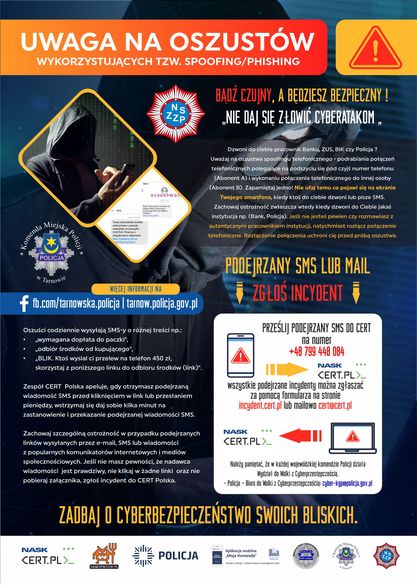 „Bądź czujny, a będziesz bezpieczny! Nie daj się złowić cyberatakom” przestrzega dzielnicowy z Tarnowa Mariusz Więcek, który rozpoczął kampanię informacyjną w tym temacie. Oszuści codziennie wysyłają SMS-y, maile, wiadomości na komunikatorach czy po prostu dzwonią, podszywając się pod znane nam instytucje. Warto wiedzieć, co w takich sytuacjach robić.