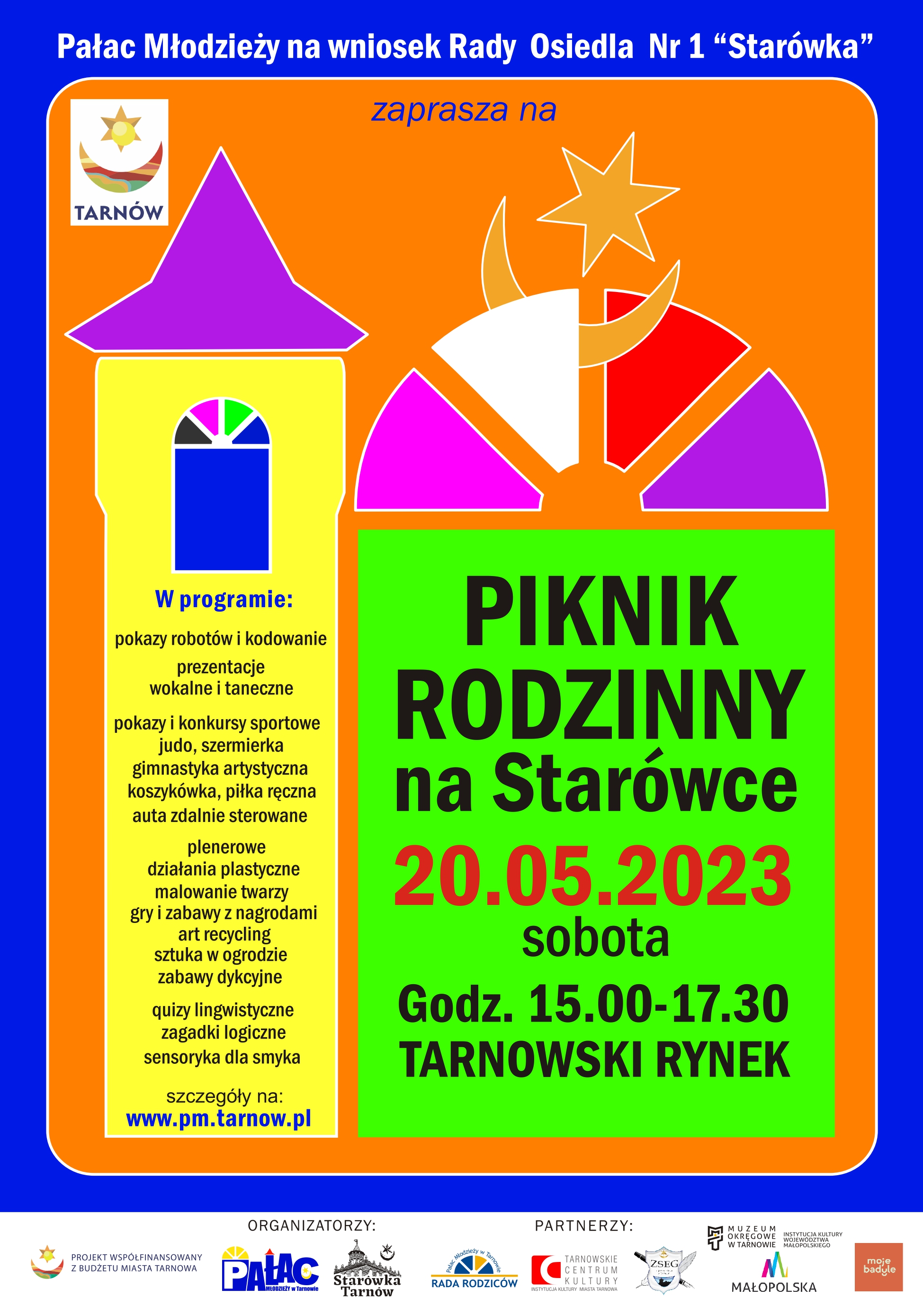 Pałac Młodzieży wraz z Radą Osiedla Starówka zapraszają 20 maja (sobota) na rodzinny piknik. Na tarnowskim rynku od godziny 15 będzie czekać mnóstwo atrakcji.