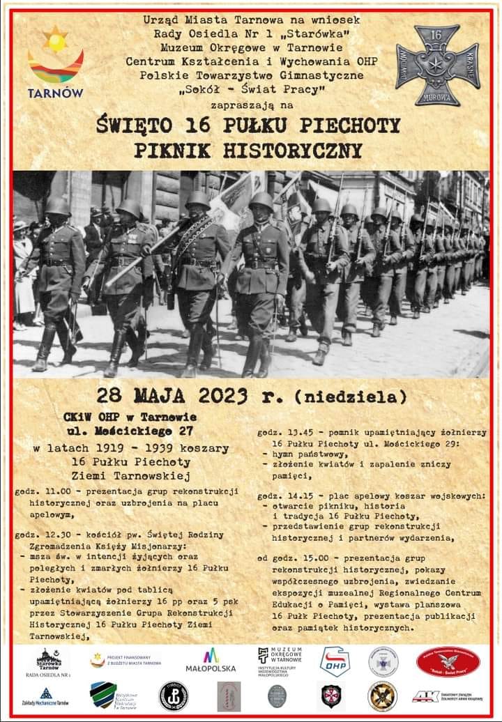 Już w najbliższą niedzielę, 28 maja, w Centrum Kształcenia i Wychowania OHP w Tarnowie (ul. Mościckiego 27) odbędzie się piknik historyczny z okazji Święta 16 Pułku Piechoty Ziemi Tarnowskiej.
