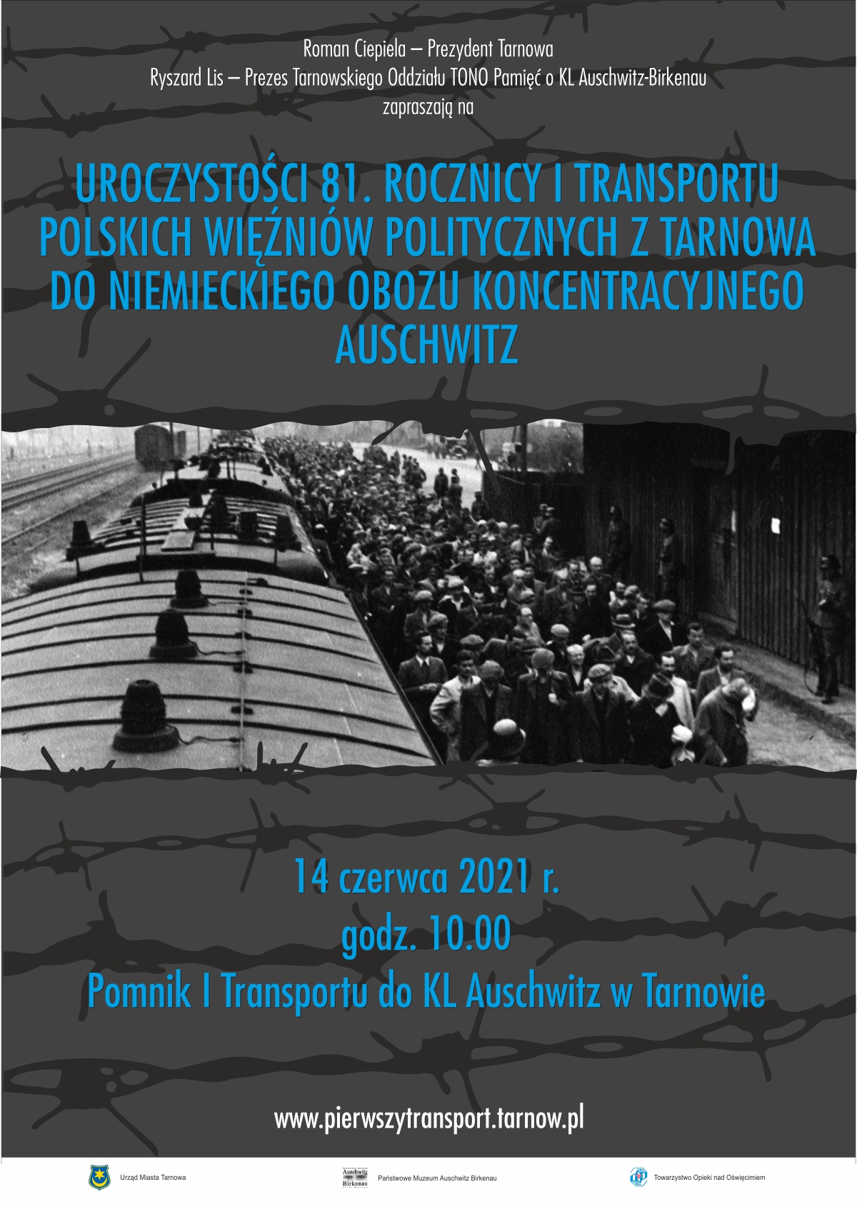 Uroczystości rozpoczną się o godz. 10 przy Pomniku I Transportu do KL Auschwitz. Zapraszają na nie prezydent Tarnowa, Roman Ciepiela oraz prezes Tarnowskiego Oddziału Towarzystwa Opieki nad Oświęcimiem Pamięć o KL Auschwitz-Birkenau, Ryszard Lis.