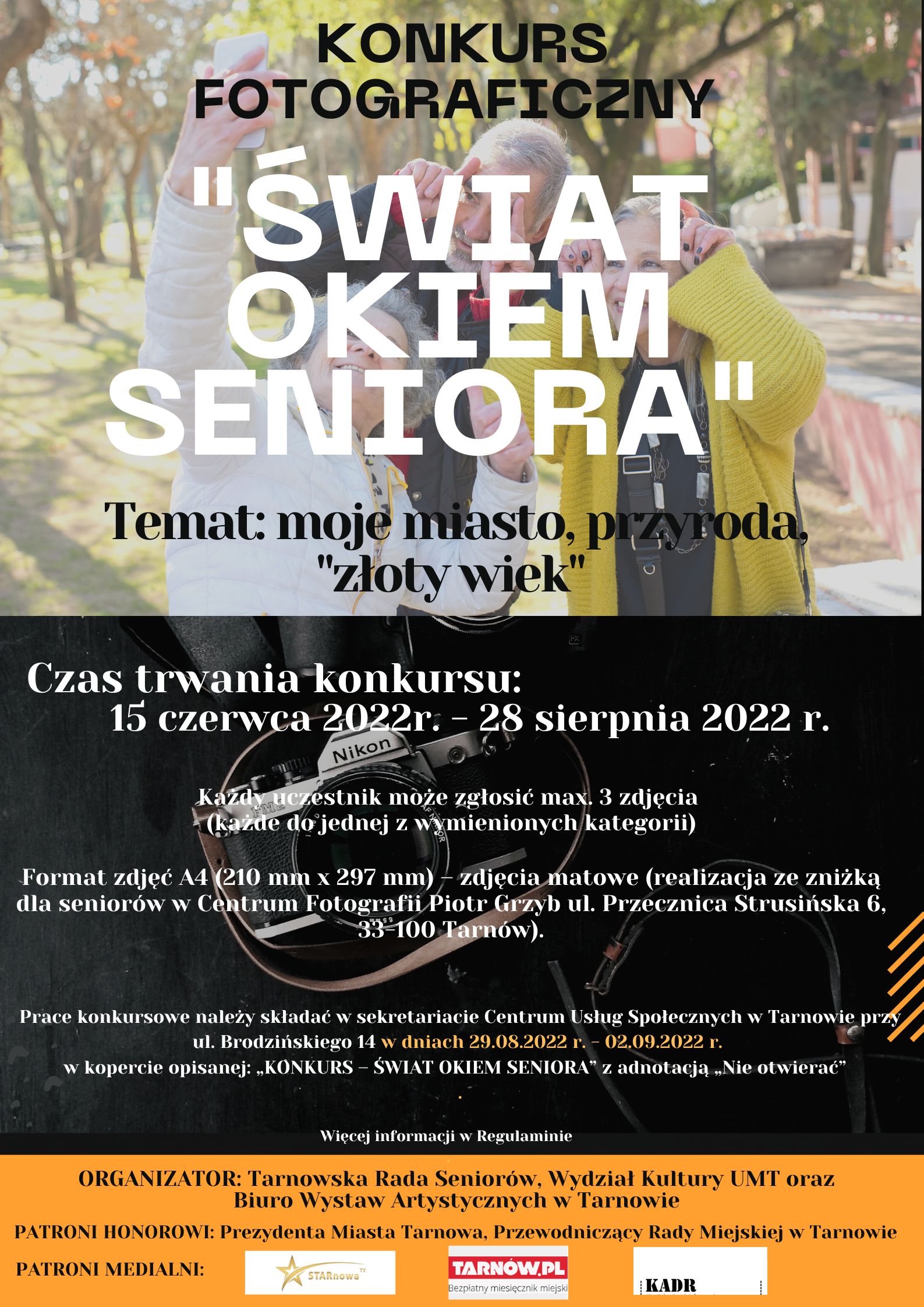 Konkurs podzielony jest na trzy kategorie: moje miasto, przyroda i „złoty wiek”. Każdy senior może zgłosić do trzech zdjęć w formacie a4 po jednym z każdej kategorii. Prace należy składać od 29 sierpnia do 2 września w sekretariacie Centrum Usług Społecznych w Tarnowie przy ul. Brodzińskiego 14 wraz z opisem koperty. Szczegóły znajdują się w regulaminie poniżej.