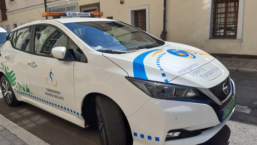 Służbowy samochód ZDiK-u został ciekawie oznakowany – oprócz logotypów, na białym tle ma zielone ikony nawiązujące do ważnych miejsc Tarnowa. Promuje ekologię i elektromobilność.