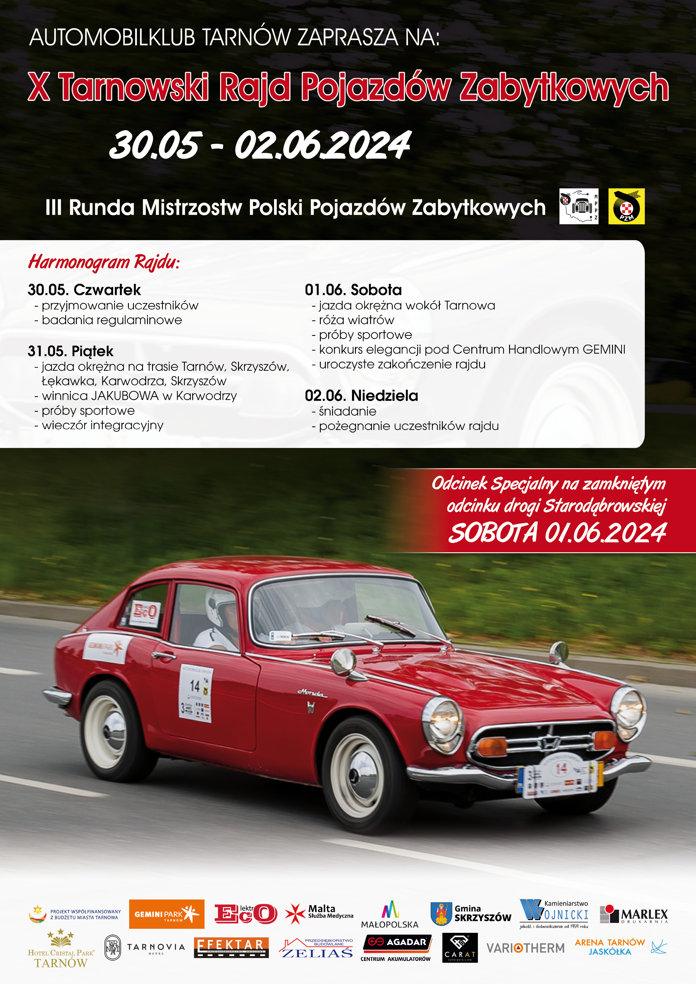 W najbliższych dniach (30 maja – 2 czerwca), Tarnów gościł będzie uczestników X Tarnowskiego Rajdu Pojazdów Zabytkowych. Impreza organizowana przez Automobilklub Tarnowski będzie trzecią rundą Mistrzostw Polski Pojazdów Zabytkowych.