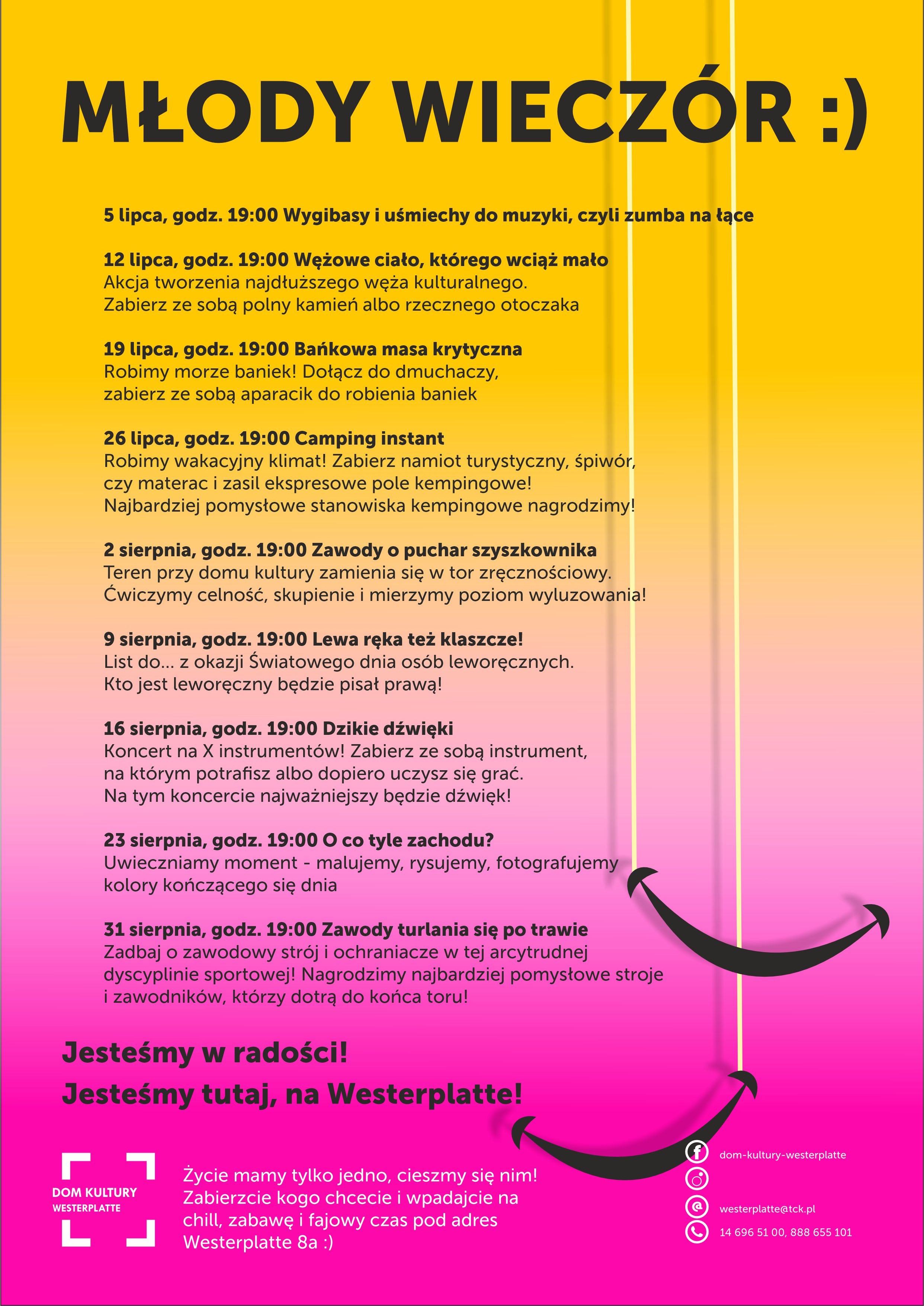 Dla młodych zaplanowano środowe spotkania plenerowe, chillowe i rozrywkowe. Wszystko robione będzie w grupie, jak taniec na łące, zawody zręcznościowe czy z turlania się po trawie.