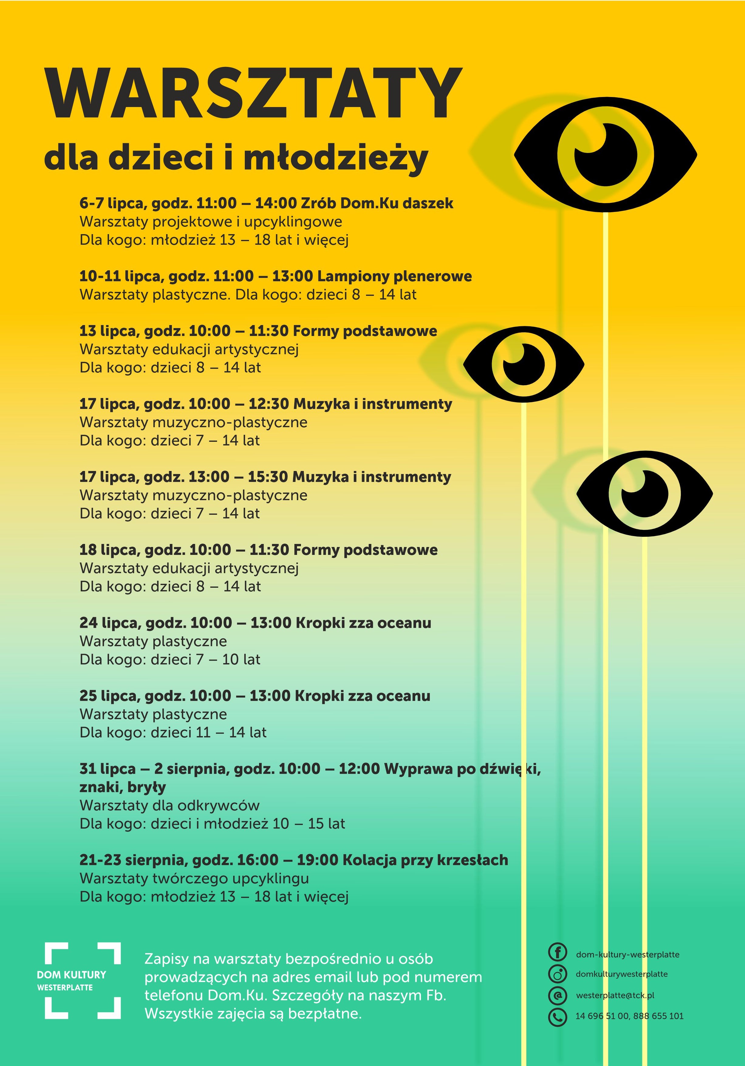Szczegółowe informacje można znaleźć na stronie kultura.tarnow.pl, fanpage'u Domu Kultury oraz w załącznikach poniżej.