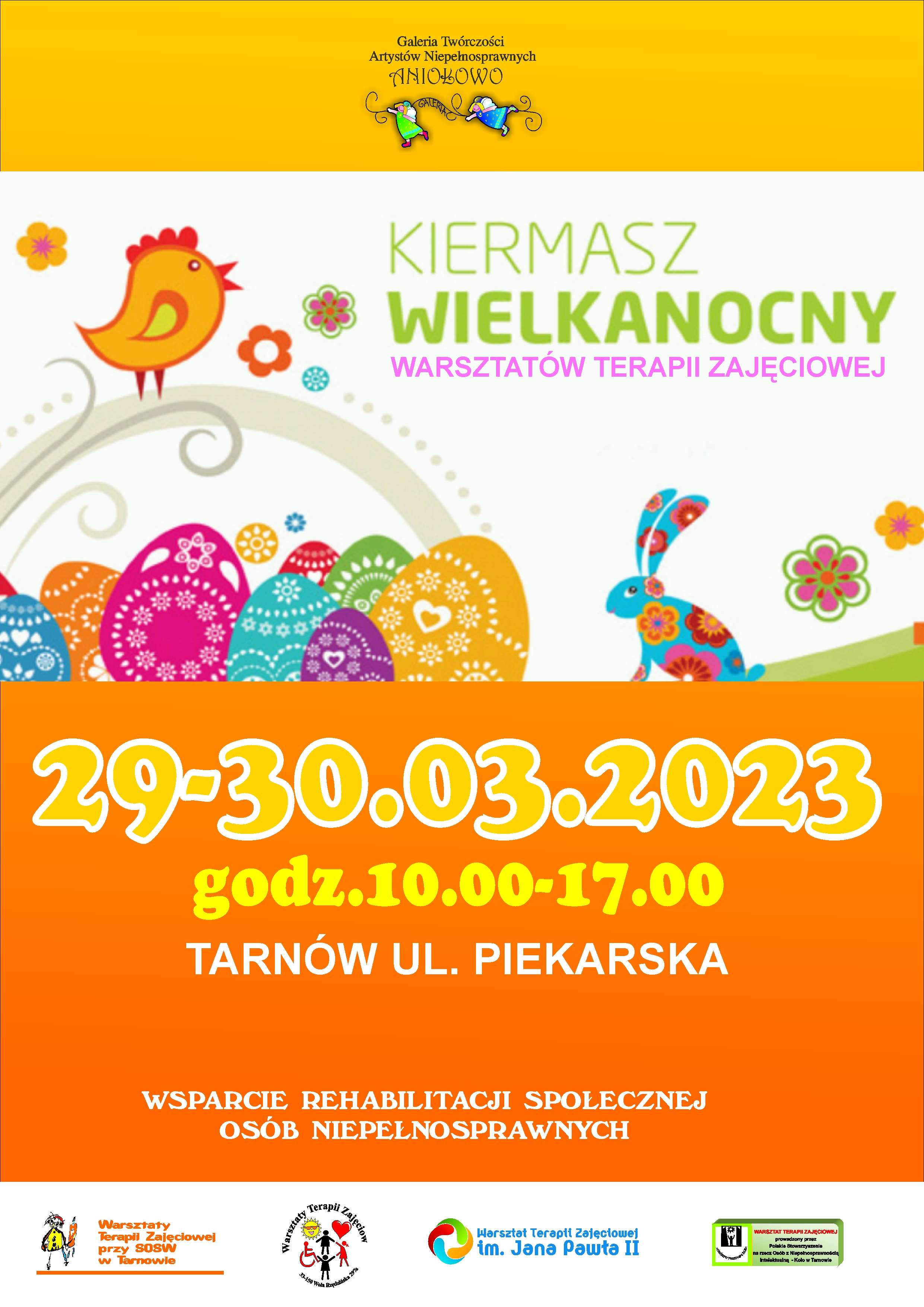 Uczestnicy WTZ przygotowali m.in. stroiki wielkanocne, koszyczki, wyklejane jajka i pisanki, wiszące dekoracje w kształcie baranków, królików czy kurcząt. Prace wystawiane na kiermasz powstały w ramach zajęć terapeutycznych. Dekoracje wykonali uczestnicy Warsztatów Terapii Zajęciowej z ul. Klikowskiej, z ul. Ostrogskich i ul. Hodowlanej oraz z Woli Rzędzińskiej.