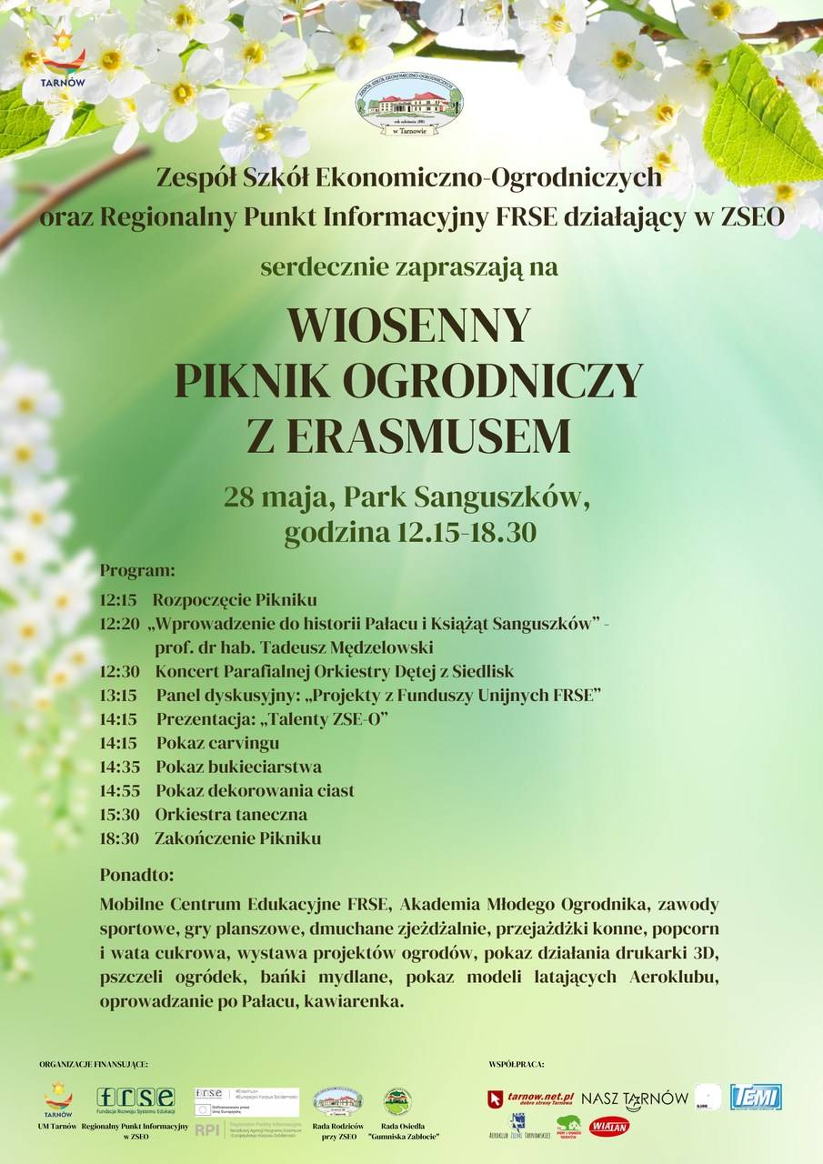 W niedzielę, 28 maja na terenach przyległych do Pałacu Sanguszków odbędzie się kolejna edycja, organizowanego przez Zespół Szkół Ekonomiczno-Ogrodniczych w Tarnowie oraz działający w nim Regionalny Punkt Informacji Fundacji Rozwoju Systemu Edukacji, Wiosennego Pikniku Ogrodniczego z Erasmusem.