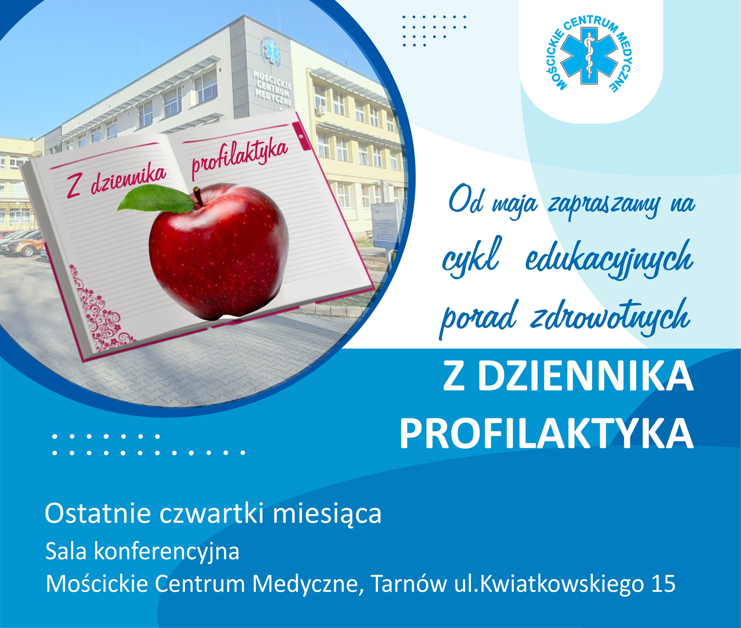 Mościckie Centrum Medyczne rozpoczyna od maja cykl edukacyjnych porad zdrowotnych „Z dziennika profilaktyka”. Będą one bezpłatnie dostępne dla wszystkich zainteresowanych.
