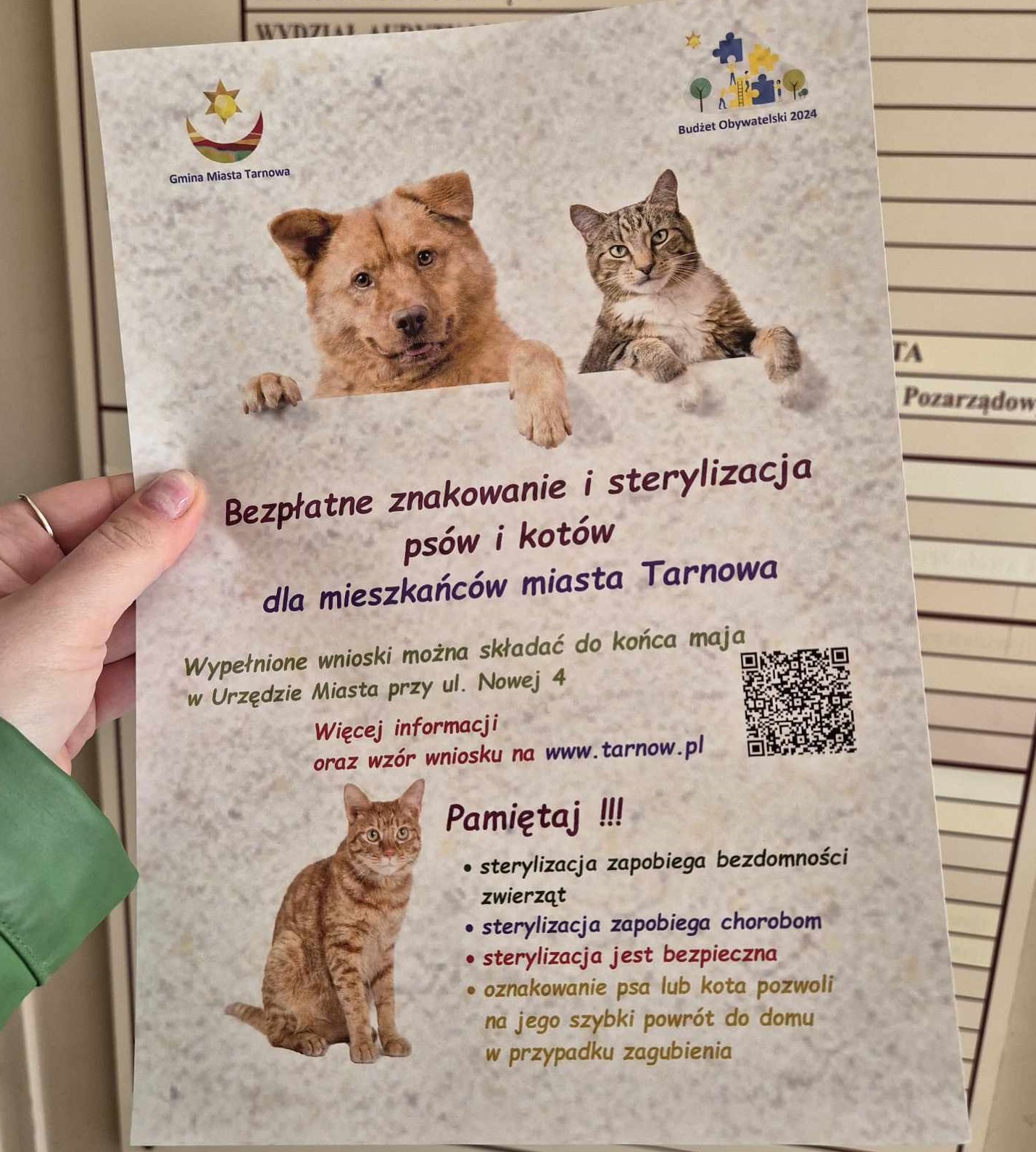 Przypomnijmy, że pieniądze na ten cel przeznaczone są z budżetu obywatelskiego. Znakowanie i sterylizacja wykonywane będą do wyczerpania środków w ramach tego projektu, obowiązuje kolejność zgłoszeń.